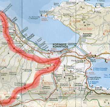 nach >Athen/Korinth ca 120 Km.